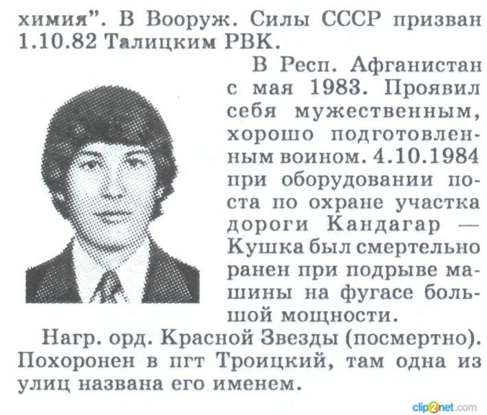 Алесандр Скородилов: "Под горой в сентябре или октябре 84 года подорвался БАТ, механику весь зад разорвало, как раз под ним рвануло. Я его (БАТ) видел как раз после подрыва, поликов под мех-водителем почти нету. Он подорвался где потом, поставили с/з " Звезда". Медик его промедолом обколол, и оказывал первую помощь, а я ему гранатовый сок давил, он много крови потерял. Вроде он был с Адраскана. Они помогали ЗУ 23 -2 на гору затаскивать, и площадку под неё готовили. К сожалению умер он, в Кандагарском госпитале его звали Сергей Москвин. Классным пацаном был, в его честь назвали улицу в поселке где он жил. Он из Свердловской области, в книге памяти Адраскан вч/ 83593 написано о нем". Фото Сергея Москвина прислал Илья Царенко, который также помогал в установке заставы на Сургаре.