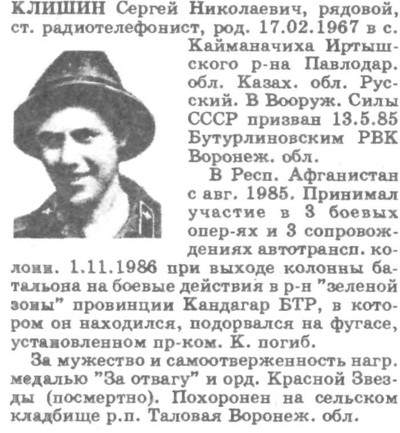 Вот что вспоминают об этом трагическом подрыве МТЛБу очевидцы. Виктор Козлов: Мы ехали с бригады в сторону полигона. БТРы поехали через мост, а МТЛБ поехала по русл справа и подорвалась на фугасе. Подлетела, перевернулась, всех придавила, отлетел Лёма Наурузов. Начал рваться боекомплект, подойти было невозможно, летели осколки от мин. Лёма остался жив. Он рассказывал как пытался вытащить из под МТЛБ Серёгу Клишина. Он к нему подполз, сунул руки, они туда и провалились. Потом его контузило, когда очухался, Серёга был мёртвый. Нам было просто не подойти к МТЛБ. Колонна встала и все это наблюдали. Я сидел на тенте 66.