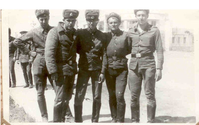 Сидят слева направо: Ком-р взвода связи 3 мсб (Фамилию не помню), к-р 9 мср к-н Лавенек Юрий, к-р саперного взвода иср (Фамилию не помню); стоят: я, к-р взвода связи бригадной роты связи (Фамилию не помню), к-р танкового взвода тб Алексей (Фамилию не помню), к-р тб м-р Рошиору, к-р мсв 8 мср ст. л-т Федор Крамер, в люке - к-р 7 мср ст. л-т Андриевский Константин. сзади солдаты 7 мср Радов, Потанин.