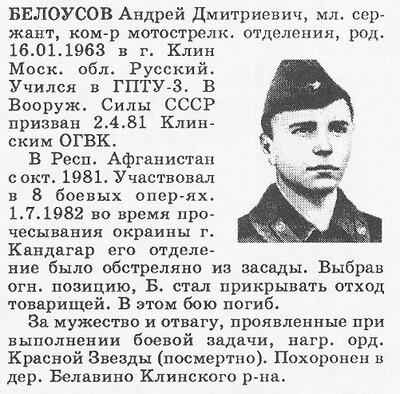 Но была у этого кяриза и печальная история. В 1982г. в том кяризе возле полигона были убиты несколько наших бойцов. По другой информация там погиб 1.7.1982г. один человек, это мл.с-нт Белоусов Андрей, командир отделения ПТВ 1 МСБ.