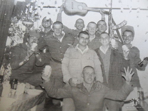 В комментариях к ней: Юрий Третьяков: Si-Si пьют, молодцы, мы 84-й встречали в камышах под каким-то кишлаком под обстрелом южнее кяризов у пакистанской границы вправо к пустыне. Двое сбежали с ДШБ, а мы поехали их искать. Андрей Воронков: Все встречали Новый год!!! Более всего мне запомнился на ОЛИМПЕ 86г. Залп одновременно из ВСЕГО, что могло стрелять. А какие гирлянды вешала Артиллерия - класс!!!