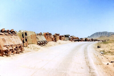 Обратно на бетонку мы возвращались абсолютно по другой местности. Саперы поработали на славу, от виноградников, из которых духи постоянно обстреливали проходящие колонны, не осталось и следа, их разровняли буквально "под ноль", хоть в футбол играй! И стену из сожженного металлолома какую отгрохали!
