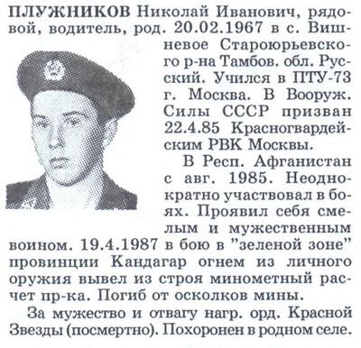 Плужников был первым солдатом 3 роты в 1987 году, погибшим не от подрыва мины, а в открытом бою, но к сожалению, не последний.
