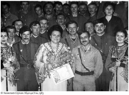 Фотография Э.Пьехи на сцене клуба после концерта в бригаде. (Из архива Анатолия Щёголева) Иногда в бригаду с концертами заскакивали ансамбли военных округов и флотов, но тоже не особо часто. Точно знаю, что в 5-6 ноября 1983г. бригаду с концертом посетила Людмила Зыкина. Не помню что, но что то помешало мне побывать на этом концерте. Вот фотография Л.Г. Зыкиной с военнослужащими 70-й бригады из архива С.Казакпаева.