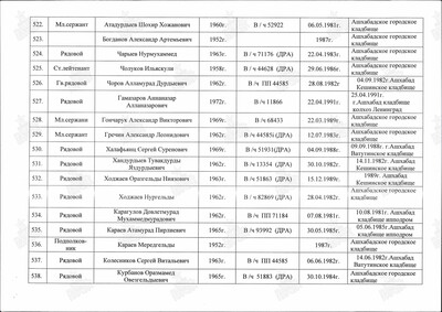 02.02.1982г. погиб рядовой Отеулиев Калила Садуахасович. Номер его в/части неизвестен. Но вот обстоятельства его гибели, описанные во ВКП:"В ходе выполнения боевой задачи по сопровождению колонны управления части 2.02.1982 БТР ком-ра бригады был подбит из гранатомета. Огнем из снайпер, винтовки О. прикрывал эвакуацию раненых из поврежденной боевой машины. При отражении нападения пр-ка действовал смело и решительно. В ходе боя был смертельно ранен".Описанные обстоятельства гибели ряд. Отеулиева К.С. напоминают ночной выход нашей бригады 31 января 1982 года, когда погиб начальник ПО Герасимчук С.А. и ранен замкомбрига Науменко Н.В. Возможно, что Отеулиев К.С. служил в бригаде, а дата гибели изменена чтобы уменьшить количество потерь. Ведь ещё ДШБ в тот день потерял 6 человек погибшими. Помогите установить истину.