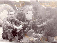 Александр Виноградов: Это пустыня, проводил комбат занятия по корректировки огня, слева на право Миша прапорщик командир пул взвода, начальник связи батальона, ком дивизиона бм 21, я с гранатой и медик батальона!