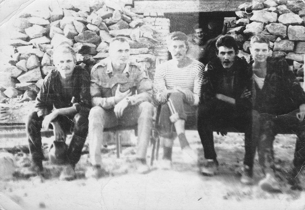 Олег Юрченко: точка "Гундиган" домик 1-го взвода передний план слева направо: взводный миномётчиков, взводный 2-го взвода, взводный 4-го взвода пр-к Хмелевских, взводный 1-го взвода, замполит роты. В проёме слева Я и водила Бахарев.