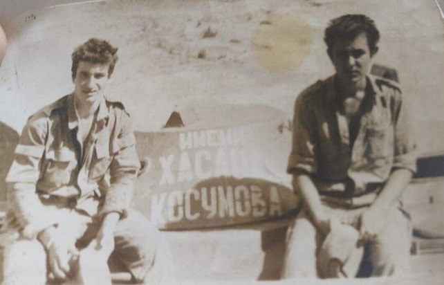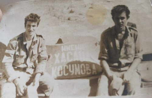 Слева на право Мисербиев Эмельхан и Сусуркаев Хампаш на БТРе имени земляка Хасана Косумова (9 мср) погибшего 30.7.86