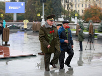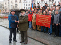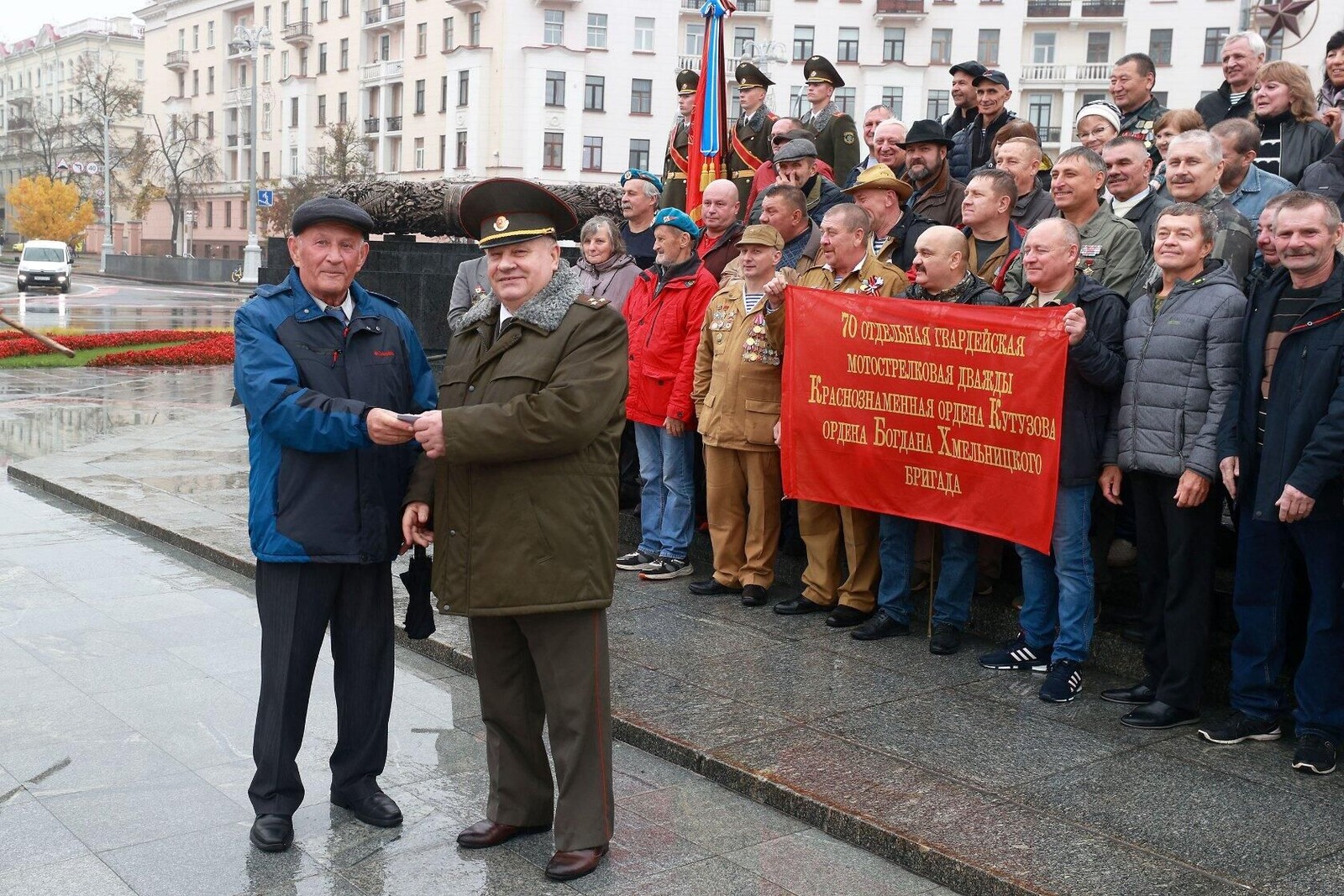 В.И.Шоков вручает памятный знак комбригу В.А.Логинову