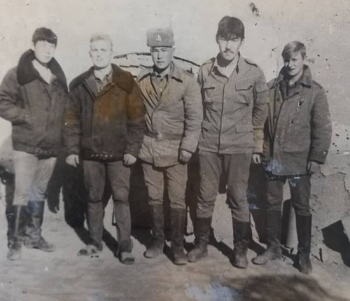 Владимир Калуцкий: Слева направо - Барбодоев Совет(Саша), Нестеров Василий - погиб 1 февраля 1986 года, Садыков Мурат, не помню-кажется киргиз, Лукьянов Виктор.