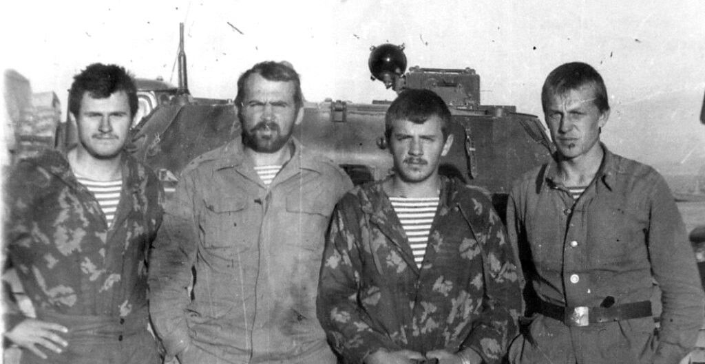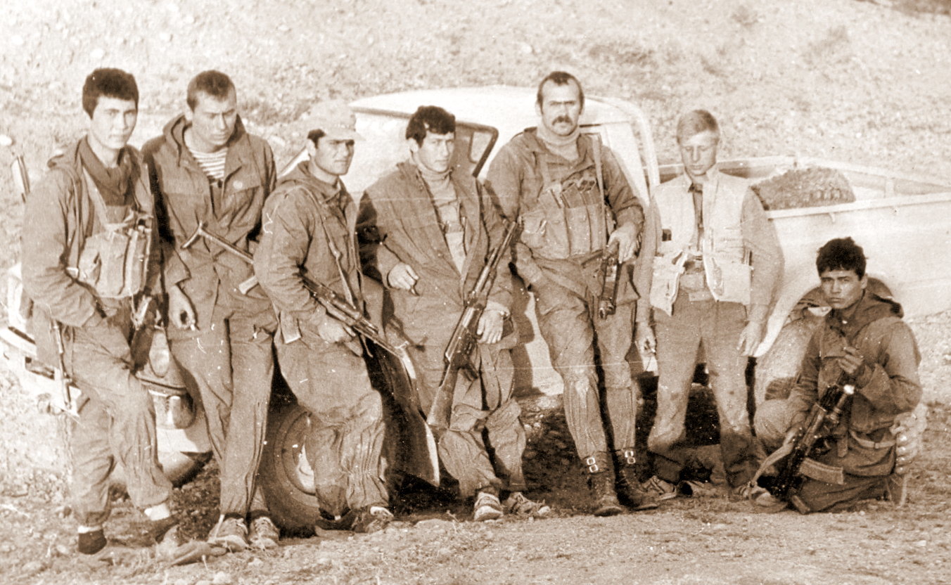 Второй слева пр-к Владимир Мокейчев - техник разведроты 85-86