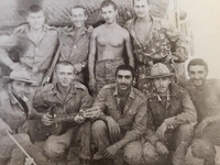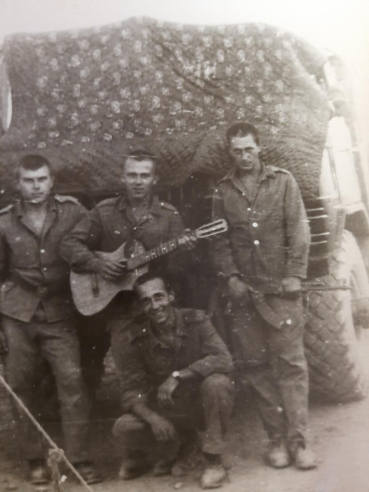Анас Тагарифуллин: Дембеля 1980 осень, рем рота, слева Киларев Виктор, с гитарой Гомон Леонид, Слепенко Анатолий, при...